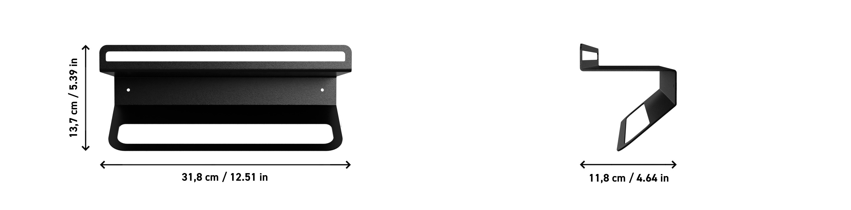 Das Towel Shelf ist aus massivem, 3 mm dickem, pulverbeschichtetem Stahl gefertigt und zeichnet sich durch seine Stabilität und Langlebigkeit aus. Durch das robuste Material ist es auch möglich, magnetisches Zubehör, wie einen magnetischen Dosierring, an dem Regal zu befestigen.